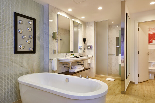 The Hotel Riu Palace Costa Mujeres, located on the Bahía de Mujeres beach, has spacious facilities, free WiFi throughout the hotel, and the best 24-hour all-inclusive service so that you can enjoy your holiday to the utmost. The extensive culinary offer, the fun entertainment program, and our exclusive RIU Hotels & Resorts service will make your stay unforgettable. This all-inclusive hotel in Costa Mujeres has 600 rooms with the finest amenities, like a minibar, beverage dispensers and a balcony or terrace. The facilities of the Hotel Riu Costa Mujeres also include five swimming pools, two of them with swim-up bars, so that you can enjoy a refreshing dip after relaxing in the lounge chairs in the solarium area. And if you want to feel the sand under your feet, there's a private area on the beach with hammocks and umbrellas.